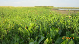 These photos were from 8-2-2012: Basins A and C are drawing down again this year. Basin B still has good water levels. Today 8-27-2012, Basins A and C are dry and Basin B has a wide perimeter of dirt inside the vegetation line. We have stopped hydrology monitoring until water levels come up.